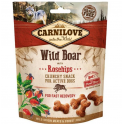 Carnilove Dog Crunchy Snack Wild Boar with Rosehips with fresh meat 200 g. Složení: divočák 50% (sušený divočák 35%, čerstvý divočák 15%), dýně 15%, žlutý hrách 8%, sušené jablko 5%, mrkev 5%, cizrna 4%, šípek 4%, kuřecí tuk (konzervovaný tokoferoly) 4%, lněné semínko 2%, sušený špenát, 2%, lněný olej 1%